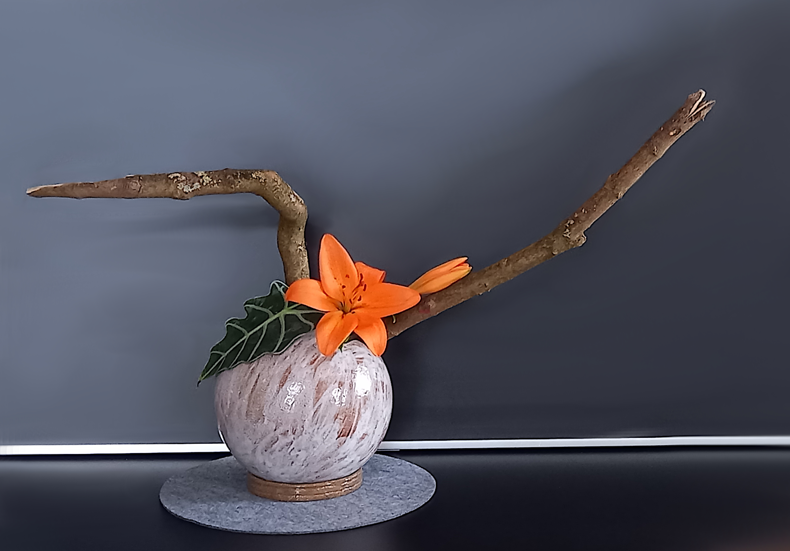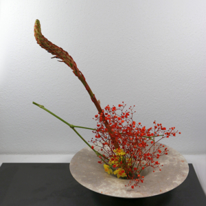 Brigitta Buse, Sogetsu: "Die Schlange" - Die Tempelblume reißt mich aus dem Novemberblues. Mein Herz geht auf.