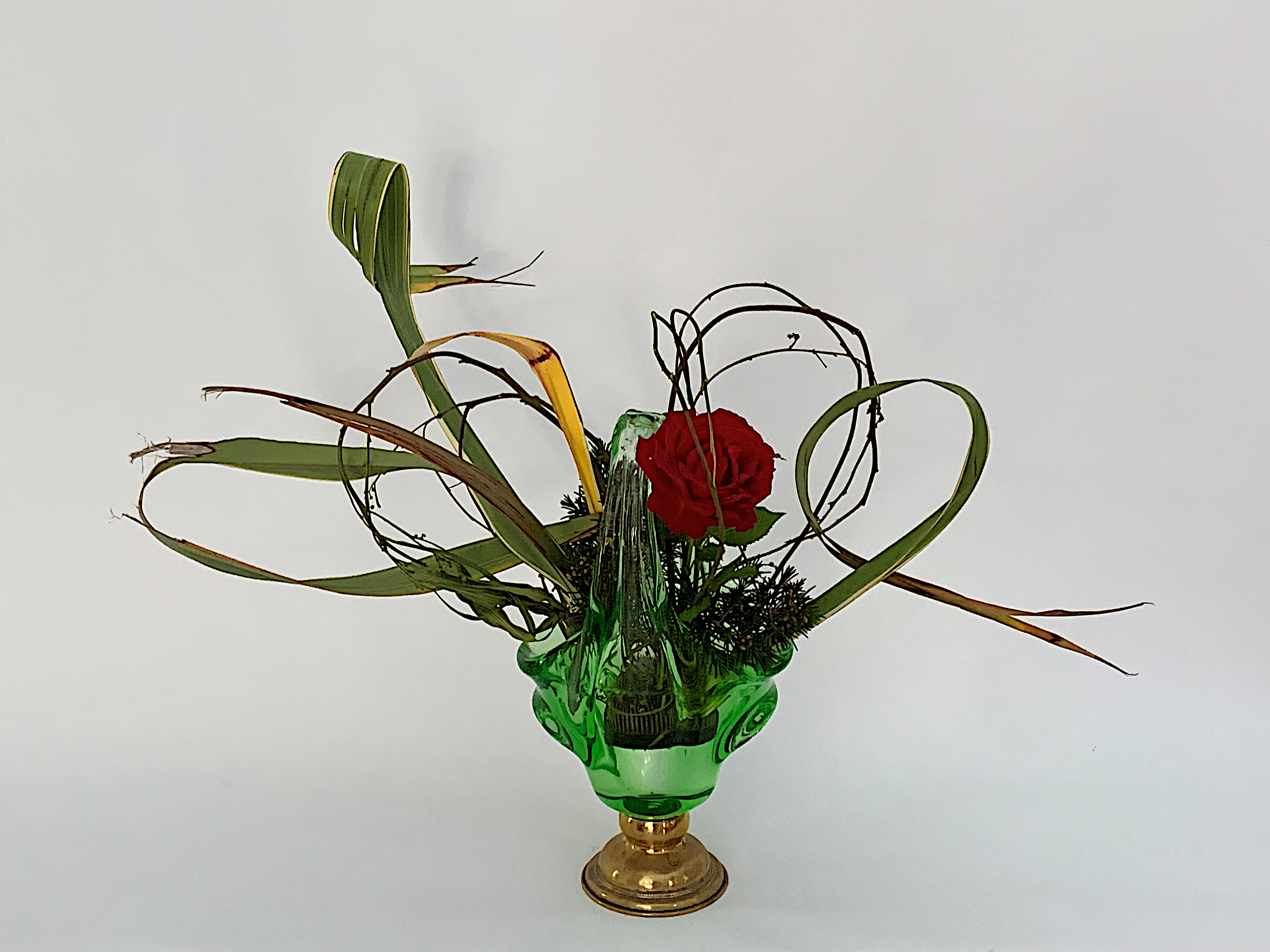 Ursula Worms, Stuttgarter Ikebana Schule e.V. ‚shin eigetsu shofu ryu´: „Am Abend stellen Sie mich unter eine Glasglocke. Es ist sehr kalt bei Ihnen. Das ist schlecht eingerichtet. Da, wo ich herkomme……“